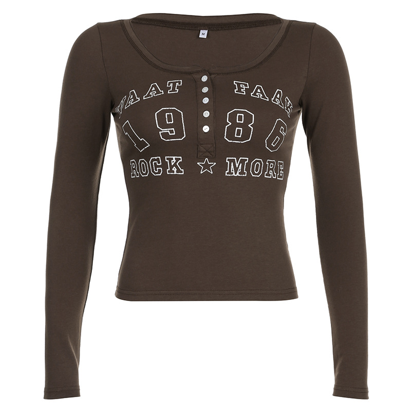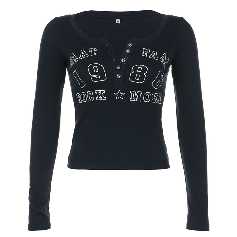 Woherb Woherb Spice Girl Letter Print Breasted V-Neck T-Shirt Women's New Slim Knit Bottom Long-Sleeved Top-Outfit Ideas