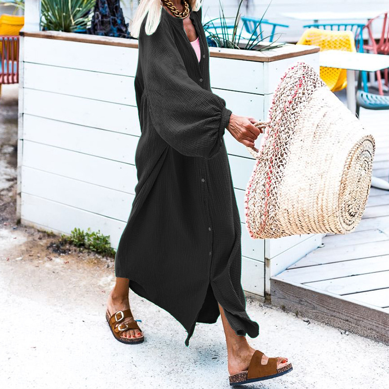 Woherb Woherb Spot 2024 Autumn / Winter New Ladies Solid Color Loose Holiday Wind Cardigan Long Dress-Outfit Ideas