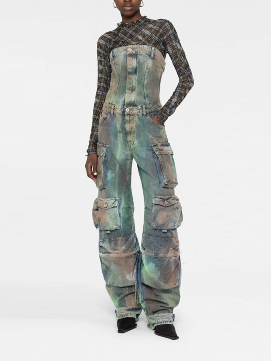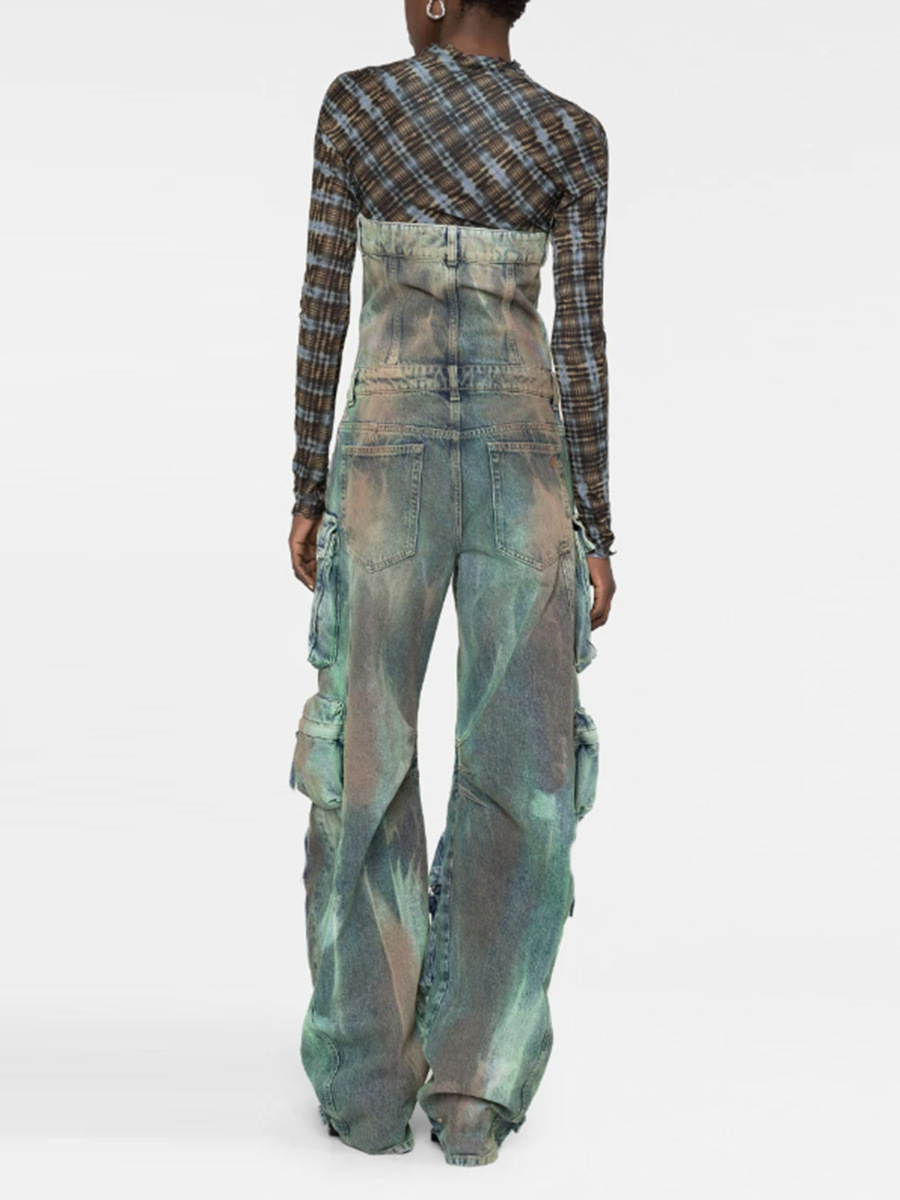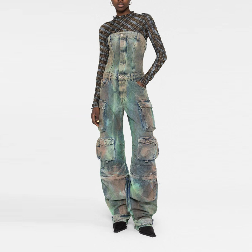 Woherb Woherb Street Hipster Advanced Sense Cargo Pants 2024 New Autumn And Winter With Breast And Waist Design Tie-Dye Jumpsuit Women-Outfit Ideas