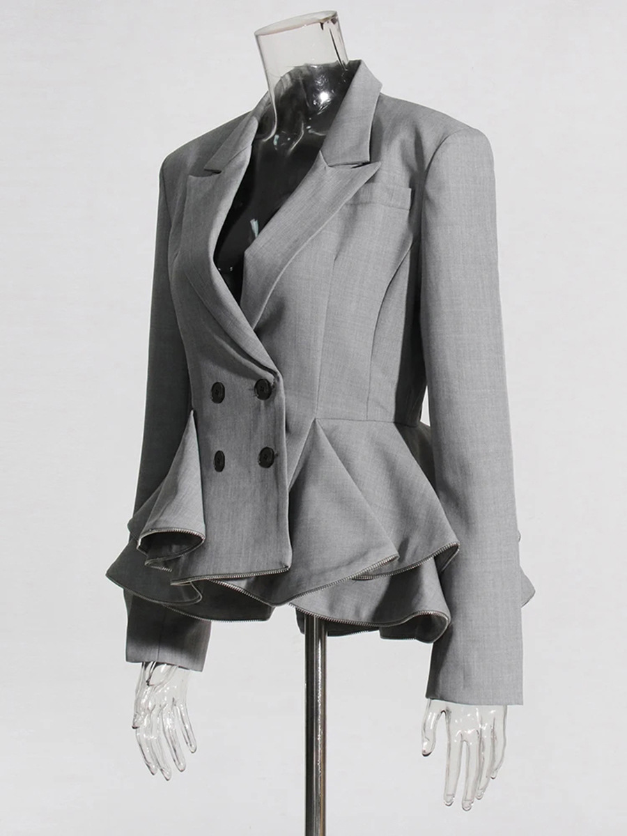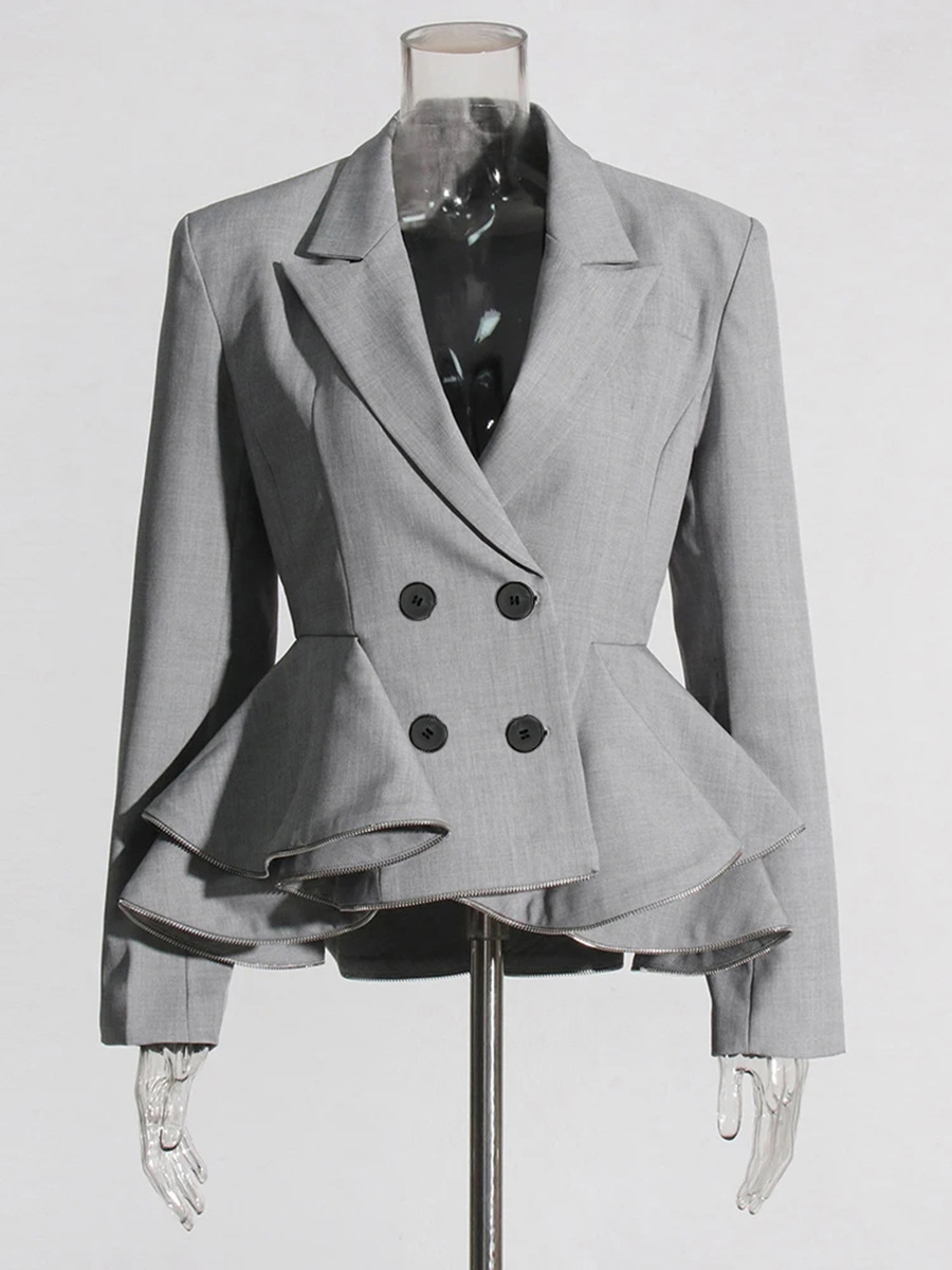 Woherb Woherb Style Temperament Elegant Small Suit 2024 Autumn New Fashion V Collar Splicing Lotus Leaf Design Coat Female-Outfit Ideas