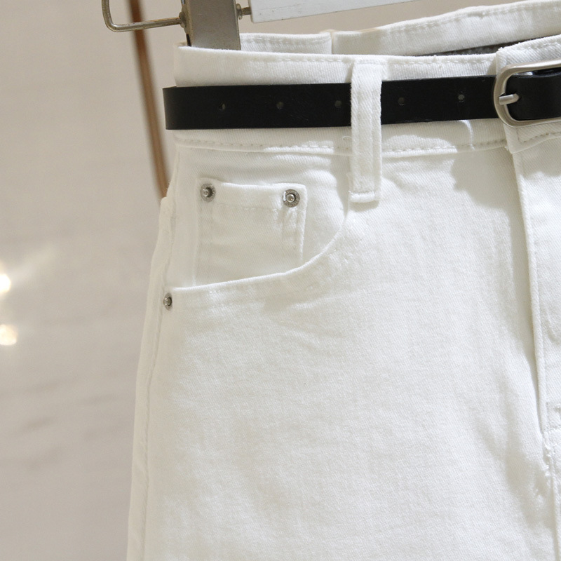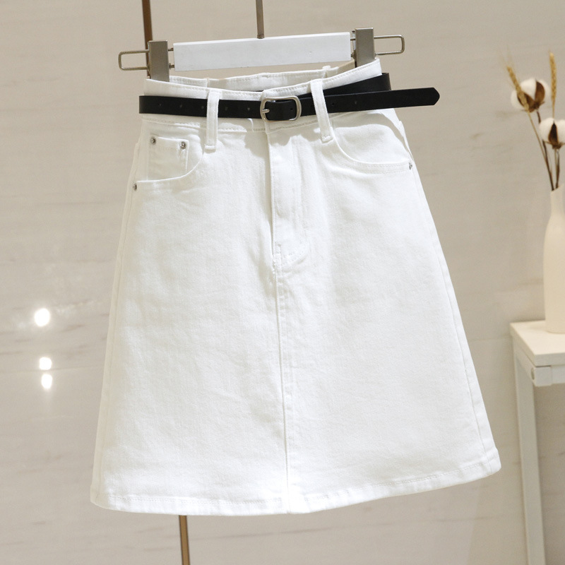 Woherb Woherb Summer New Style High Waist White Denim Skirt Korean Version Versatile Show Thin A-Word Wrap Hip Skirt Tide-Outfit Ideas