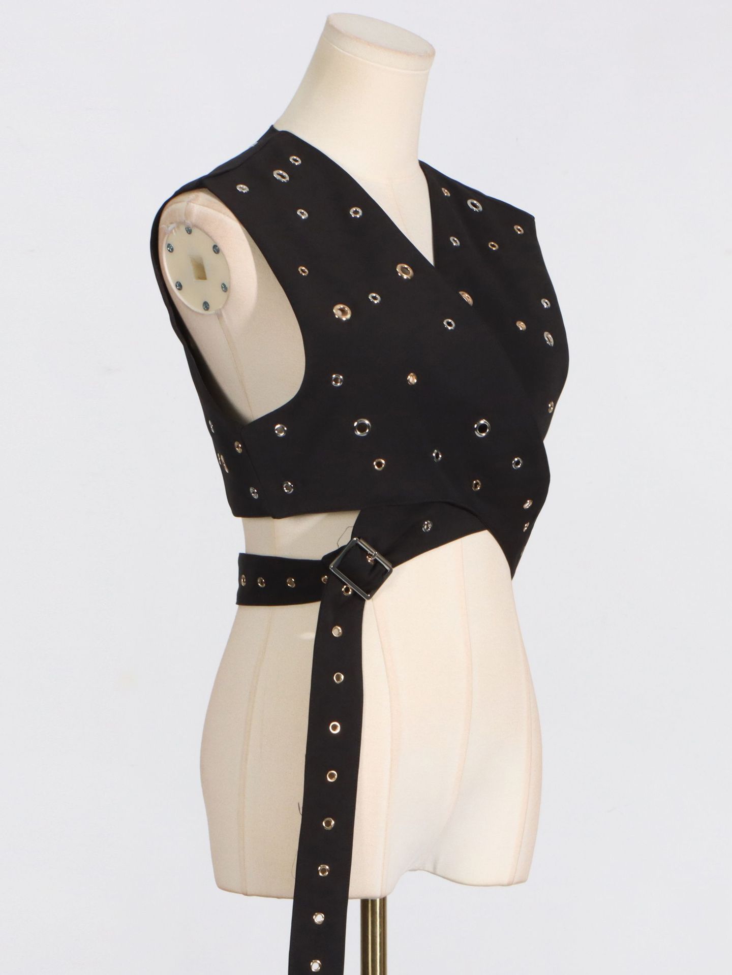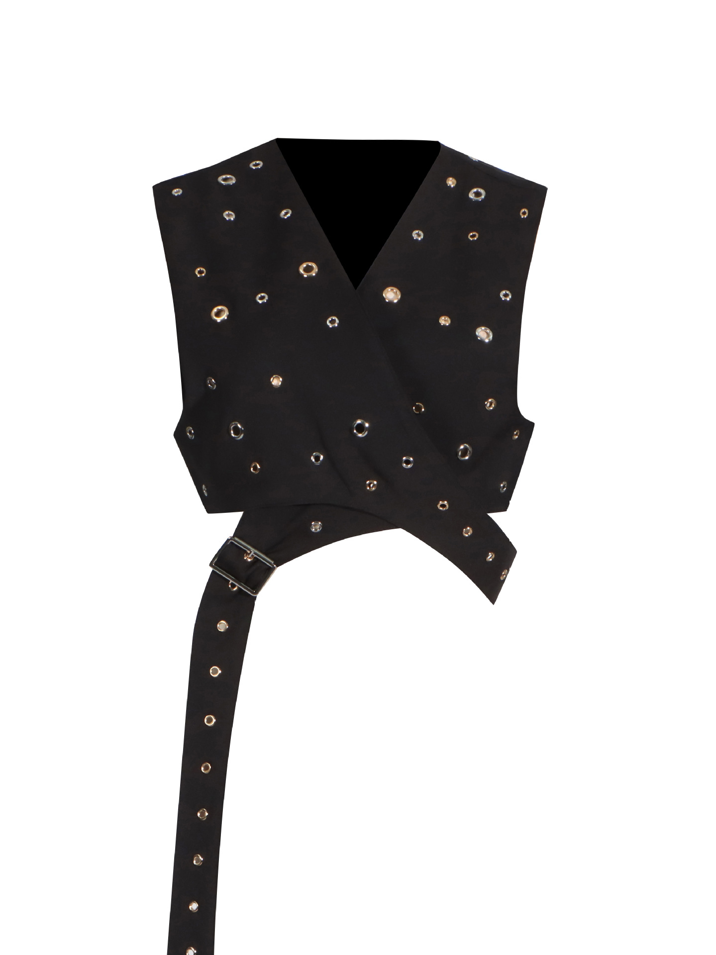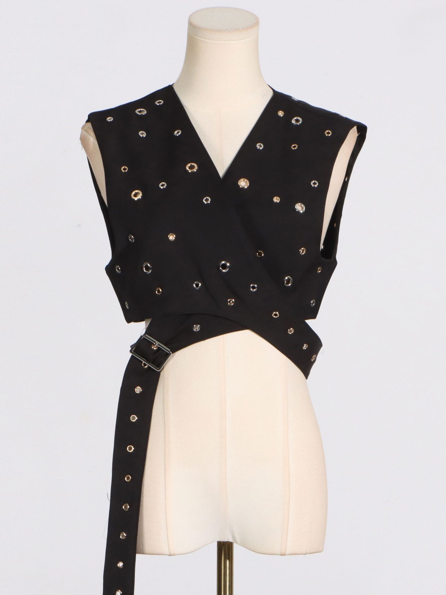 Woherb Woherb Trend Wind Sleeveless Jacket 2024 Summer New Personality Handmade Rivets Splicing Design Sense Vest Female-Outfit Ideas