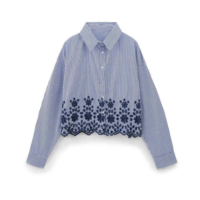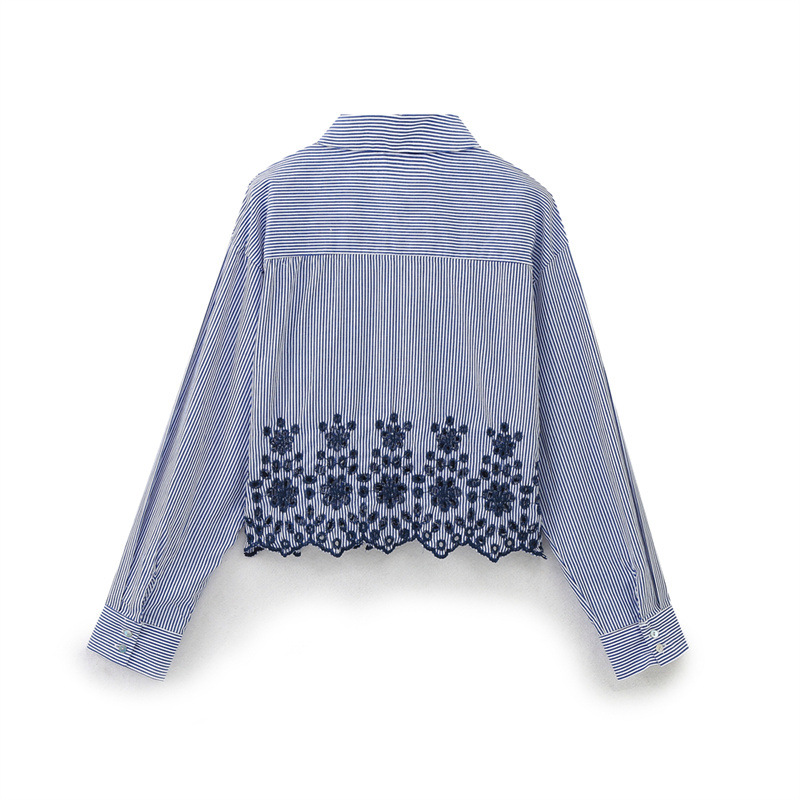 Woherb Woherb Women's Summer New Fashion Hollowed-Out Embroidered Striped Shirt 3211994-Outfit Ideas