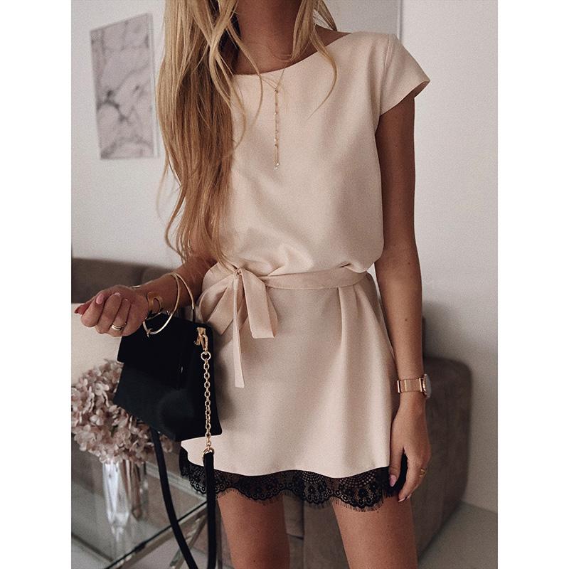 Women Dress Short Sleeve Straight Lace Mini Party Dresses Summer Elegant Robe Femme Womens Clothing 2020