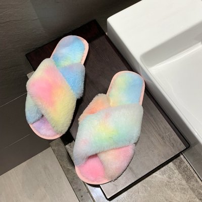Women Fluffy House Slippers Cozy Faux Fur Cross Floor Indoor Slides Female Slip On Furry Flip Flops Warm Shoes Home Slippers