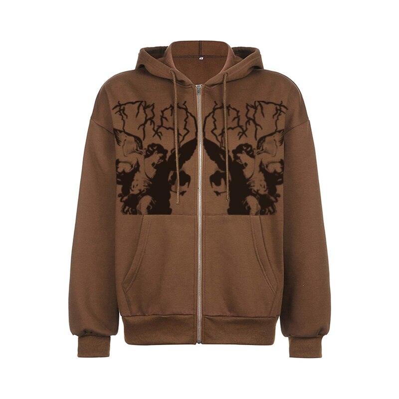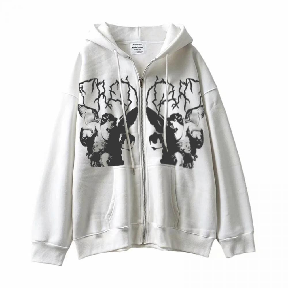 Women Hip Hop Streetwear Hoodies Women Jacket Angel Dark Print Jacket Coat Goth Harajuku Y2k Clothes Punk Jacket Outwear Zipp