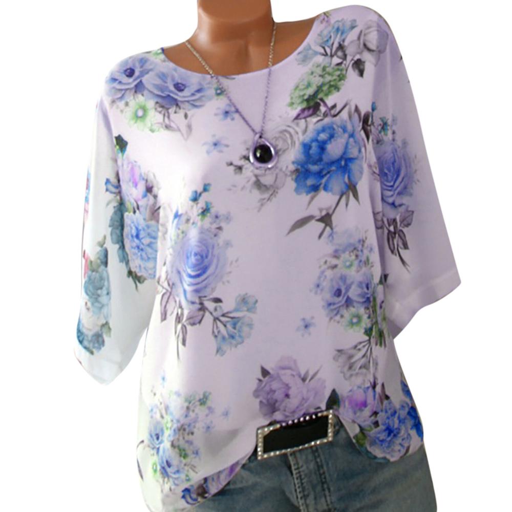 Women Plus Size S-5XL Blouse Loose Floral Print Slash Neck Blouse Pullover Tops Shirt womens tops and blouses camisas mujer NEW
