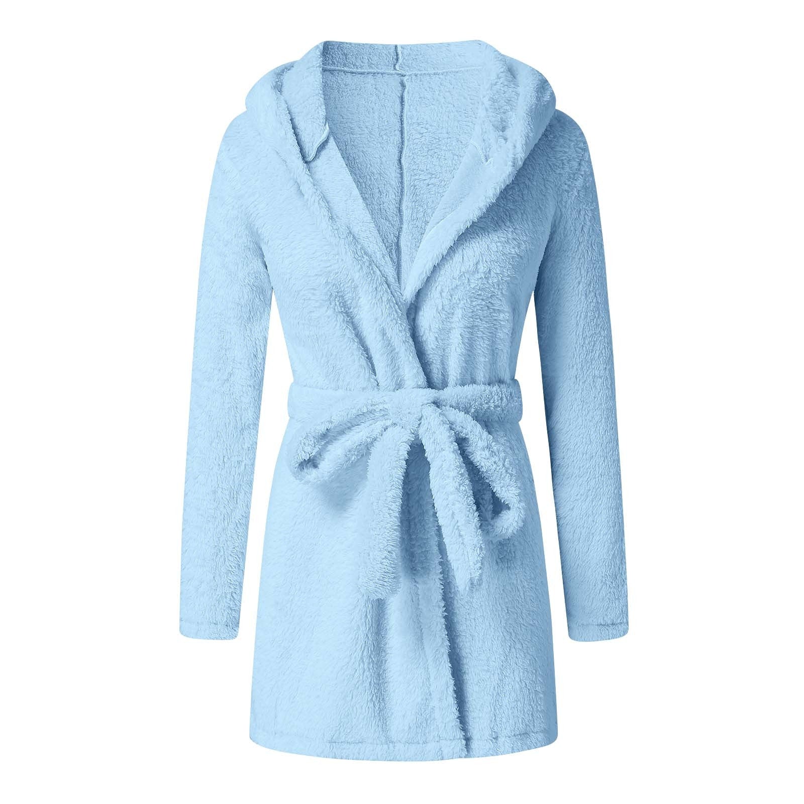 Women Plush Bandage Robe Soft Comfortable Cute Warm Pajamas Winter Sleepwear Shower Spa Bathrobe Sleep Nightgown Dressing Gown