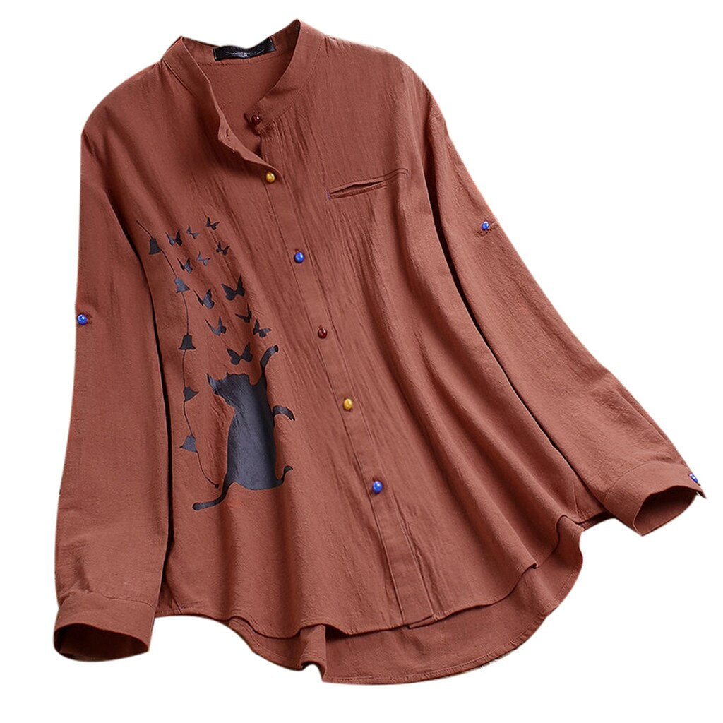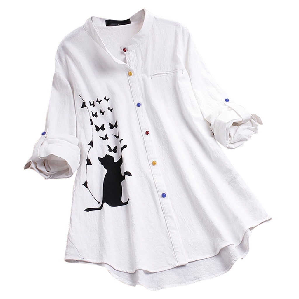 Women Shirt Casual Cat Print Blouse Long Sleeve Blouse Colorful Button Shirt Top Blouse womens tops and blouses ropa mujer NEW