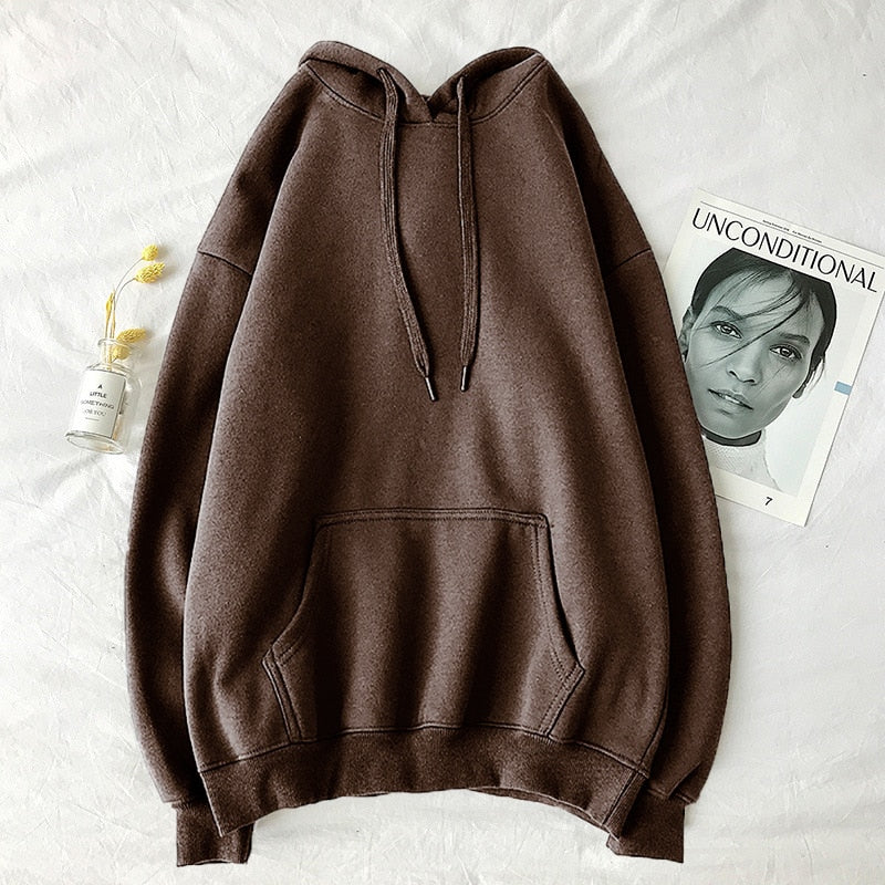 Women Solid Winter Hoodies 13 Colors Warm Oversized Plus Velet Woman Sweatshirts Harajuku Hooded Thicken Female Hoody Tops