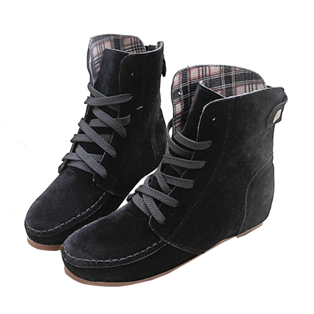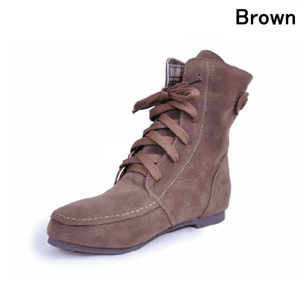 Women Suede Leather Ankle Boots Casual Lace Up Winter Boots Comfortable Soft Rubber Solid Black Flat Shoes Plus Size Female 2019