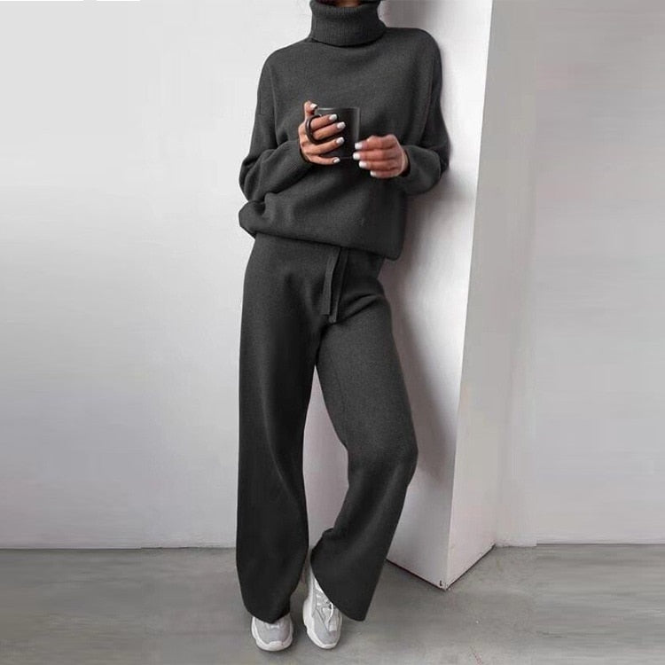 Women Sweater Suit Autumn Turtleneck Pullover Two Piece Set Casual Solid Loose Sweater and Long Pants Tracksuit Female Outfits