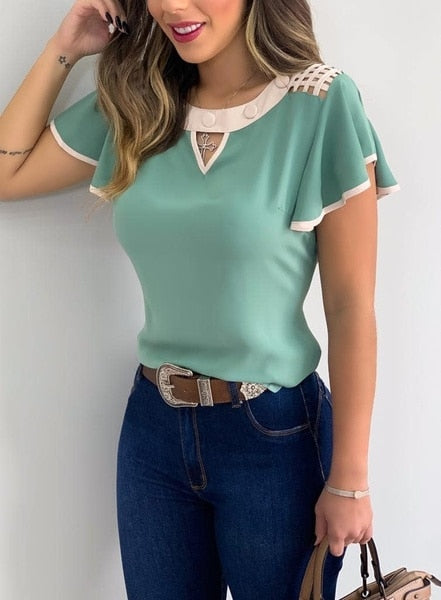 Yskkt Women's Fashion Ruffled Short Sleeves Chiffon Tops Casual Slim Fit Shirts Blouse Blusas Mujer De Moda 2020 Verano